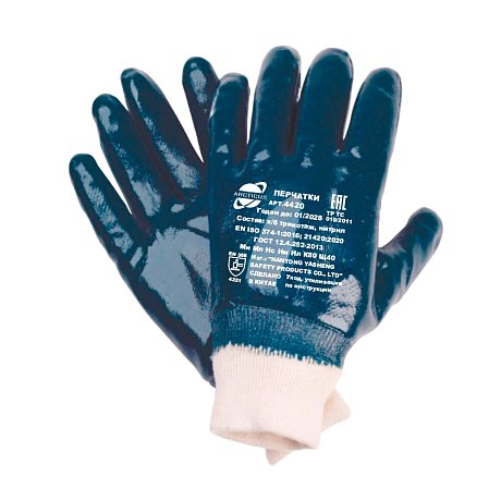 Arcticus 4420 – перчатки трикотажные "Стандарт" с полным нитриловым покрытием синего цвета. Трикотажный манжет. Антистатичны.